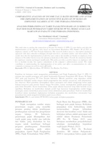 This study aims to analyze the comparison of Income Tax Article 21 (PPh 21) rates before and after the implementation of the effective rates based on Government Regulation (PP) Number 58 of 2023 on employee salaries at PT Ume Persada Indonesia. The research method used is a descriptive-analytical approach with data collection techniques through interviews, document studies, and observations. The results show that the implementation of effective rates reduces the monthly tax burden on employees from January to November but increases the amount of deduction in December. Overall, the annual tax burden for employees remains unchanged significantly. This policy provides a positive impact on employees with low to medium income, but requires adjustments in the company’s administration system. This study contributes to understanding the implementation of tax policy and offers recommendations for other companies to manage tax policies more efficiently.