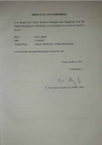 Kadhafi, Dedi (2022) Kajian Kepuasan Pelanggan Pada Penggunaan Kode QR Produk Udang Beku PT. Kelola Mina Laut Berdasarkan Teori Stimulus Organism Respon. Masters thesis, Universitas Muhammadiyah Gresik.