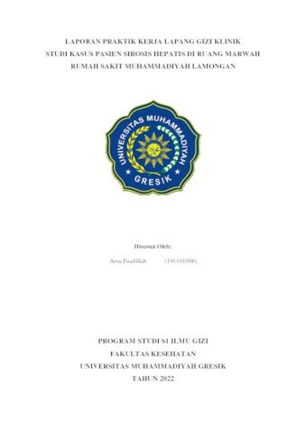Fuadillah, Arna (2022) Laporan Praktik Kerja Lapang Gizi Klinik Studi Kasus Pasien Sirosis Hepatis Di Ruang Marwah Rumah Sakit Muhammadiyah Lamongan. Project Report. S1 Ilmu Gizi Universitas Muhammadiyah Gresik. (Submitted)