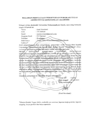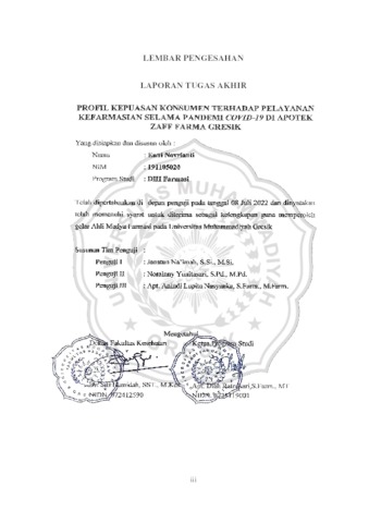 Novrianti, Enni (2022) Profil Kepuasan Konsumen Terhadap Pelayanan Kefarmasian Selama Pandemi Covid-19 Di Apotek Zaff Farma Gresik. Diploma thesis, Universitas Muhammadiyah Gresik.