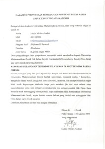 Andini, Anjar Mutiara (2023) Kepuasaan Pelanggan Terhadap Pelayanan Di Apotek Mida Farma Gresik. Diploma thesis, Universitas Muhammdiyah Gresik.