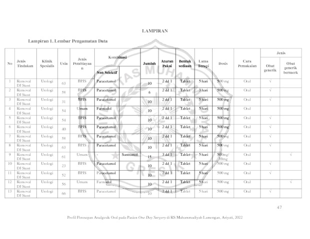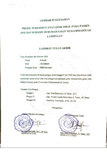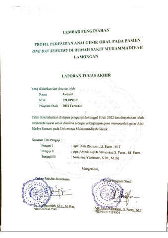 Ariyati, Ariyati (2022) Profil Peresepan Analgesik Oral pada Pasien One Day Surgery di RS Muhammadiyah Lamongan. Diploma thesis, Universitas Muhammadiyah Gresik.