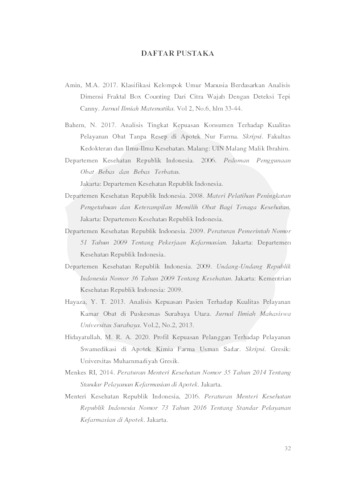 | Uncontrolled Keywords: | Pelayanan kefarmasian, Apotek, Kepuasan konsumen, Swamedikasi. |