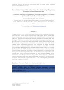 Penggunan popok yang terlalu lama dapat mengakibatkan peradangan dan iritasi pada kulit bayi, hal ini disebut dengan istilah ruam popok. Ruam popok dapat diatasi dengan salah satu bahan aktif yaitu zink oksida. Cera alba mempunyai sifat yang baik sebagai pengikat minyak sehingga menghasilkan sediaan salep yang homogen. Viskositas merupakan faktor yang dapat mempengaruhi pelepasan zat aktif dari salep. Viskositas salep dapat ditingkatkan dengan penambahan cera alba. Penelitian ini bertujuan untuk menentukan formula optimal salep zink oksida dengan variasi konsentrasi cera alba. Jenis penelitian ini adalah penelitian eksperimental untuk membedakan hasil formulasi dan evaluasi fisik salep zink oksida berbasis variasi konsentrasi cera alba antara formula I yaitu 10%, formula II 15% dan formula III 20%. Hasil penelitian menyatakan pada sediaan salep zink oksida formula I memenuhi spesifikasi evaluasi organoleptis, pH, daya sebar, dan homogenitas. Sedangkan pada formula II dan III tidak memenuhi spesifikasi pada evaluasi daya sebar. Kesimpulan penelitian ini yaitu terdapat pengaruh variasi konsentrasi cera alba pada evaluasi daya sebar, dimana formula I (5,75 cm) memiliki daya sebar yang lebih baik dibandingkan formula II (4 cm) dan formula III (2 cm). Persyaratan daya sebar salep yaitu 5-7 cm. Formula paling optimal dari penelitian ini adalah formula I.