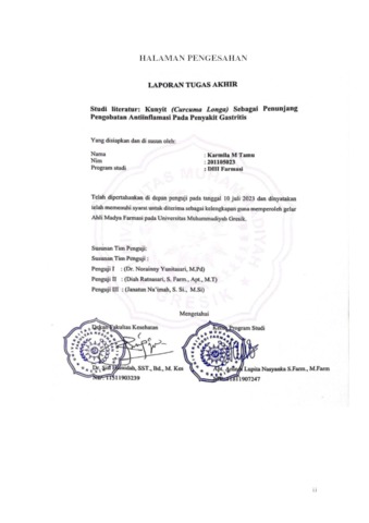 Tamu, Karmila M. (2023) Studi Literatur: Kunyit (Curcuma Longa) Sebagai Penunjang Pengobatan Antiinflamasi Pada Penyakit Gastritis. Diploma thesis, Universitas Muhammadiyah Gresik.